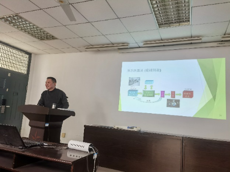 许哲源博士是矿区环境污染控制与修复湖北省重点实验室教授及学术骨干,在专题演讲中,许博士着重介绍了PCB产业废弃物及其处置技术,深入解析了该领域的前沿技术和应用案例,同时分享了在矿区环境保护方面的创新性研究成果,为我校师生展示了科学研究与产业应用相结合的特色产学之路。许博士演讲全程融入可持续发展理念,激发了在场师生对生态环境保护研究的浓厚兴趣。